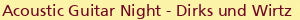 Das Duo „Dirks und Wirtz“ avancierte durch seinen Sonderpreis beim „1. EUROPEAN GUITAR AWARD“ 2006 zu einer Neuentdeckung in der internationalen Musikszene. Meisterhaft zelebrieren sie Klassiker von Astor Piazzolla, Sting, Ennio Morricone und Chick Corea sowie eigene Kompositionen, welche Elemente des konzertanten Tango Nuevo, des Flamencos, der südamerikanischen Folklore sowie des Musette-Walzers auf aussergewöhnliche Weise miteinander verbinden. Mit ihren Instrumenten gehen die beiden Musiker weit über die Grenzen einer klassischen Gitarre hinaus und schaffen Raum für einen virtuosen Dialog. Ralph Towner: „Eine Aufsehen erregende spielfreudige Macht. Ein wundervolles Duo!“
